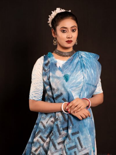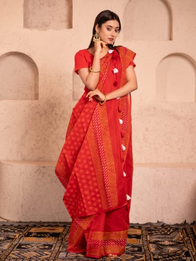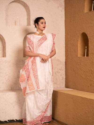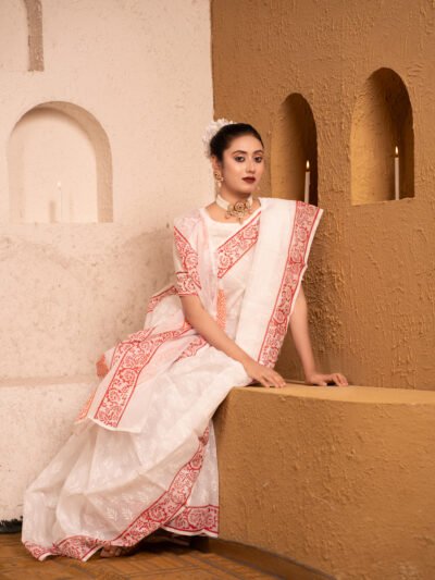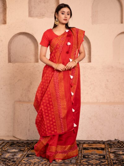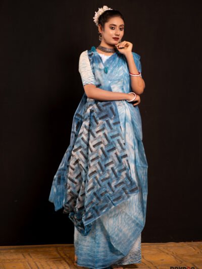 সেমি মসলিন কাপড়ে ব্লক প্রিন্ট করা শাড়ি