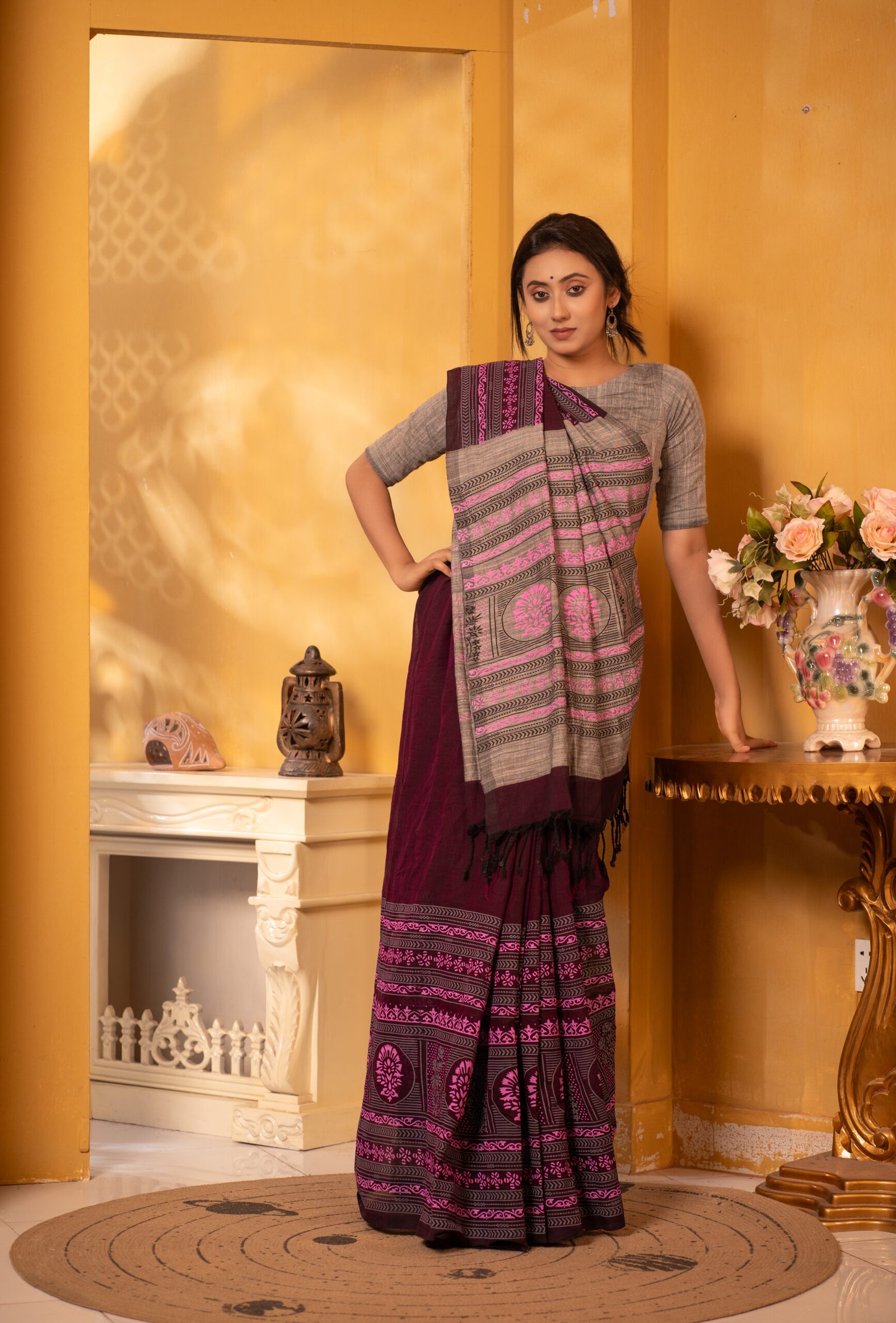 এন্ডি কটন স্ক্রিন প্রিন্ট শাড়ি